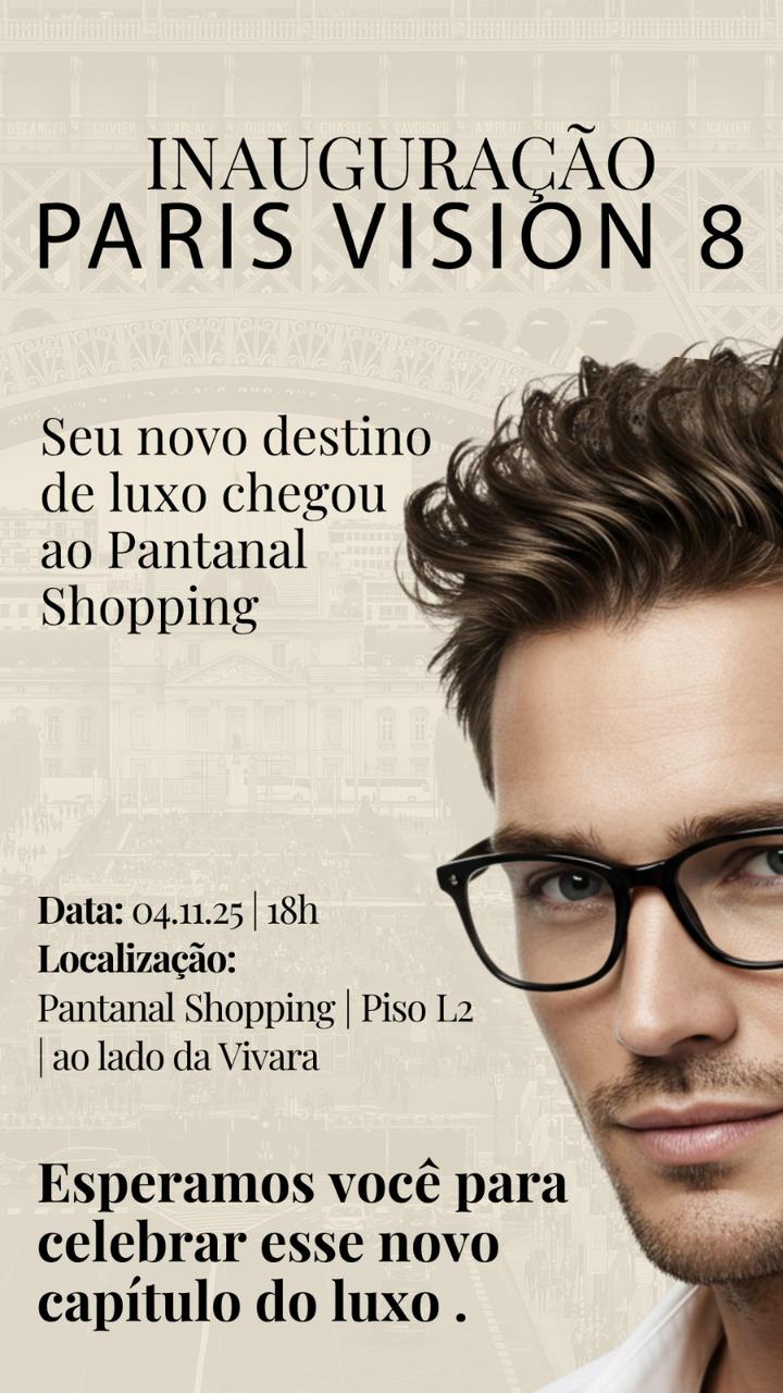 Com 23 anos de trajetória no setor óptico, os empresários Marlene e Eduardo Carvalho anunciam a chegada da Paris Vision 8 ao Pantanal Shopping, um espaço que eleva o padrão de luxo e sofisticação em eyewear na região.