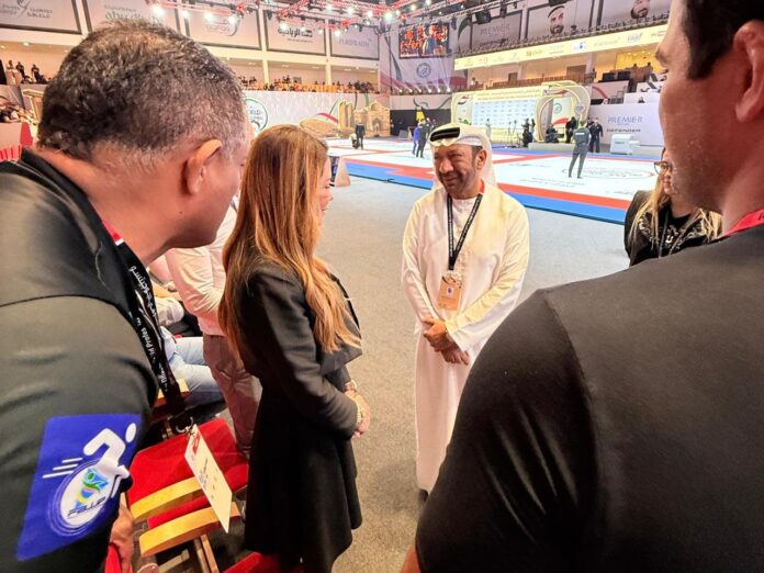 A primeira-dama de MT Virginia Mendes, embaixadora mundial e madrinha nacional do Jiu-Jitsu Paradesportivo, participou nesta quarta-feira (19.11) de uma imersão no Gracie Barra Connection (GB), em Abu Dhabi, ao lado do secretário de Estado de Cultura, Esporte e Lazer ( Secel), David Moura, e do presidente da Federação Brasileira de Jiu-Jitsu Paradesportivo (FBJJP) e membro do Conselho Internacional de Jiu-Jitsu, Elcirley Luz Silva.