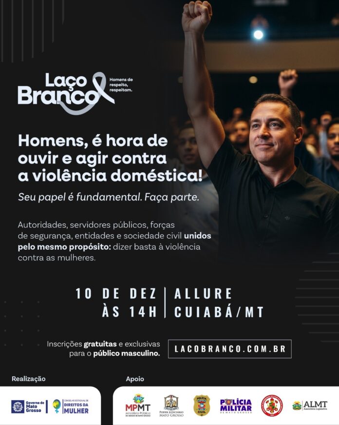 Quero te fazer um convite especial. No dia 10 de dezembro, às 14h, vamos realizar o encontro da Campanha Laço Branco – MT, no Allure, Complexo Leila Maluf.