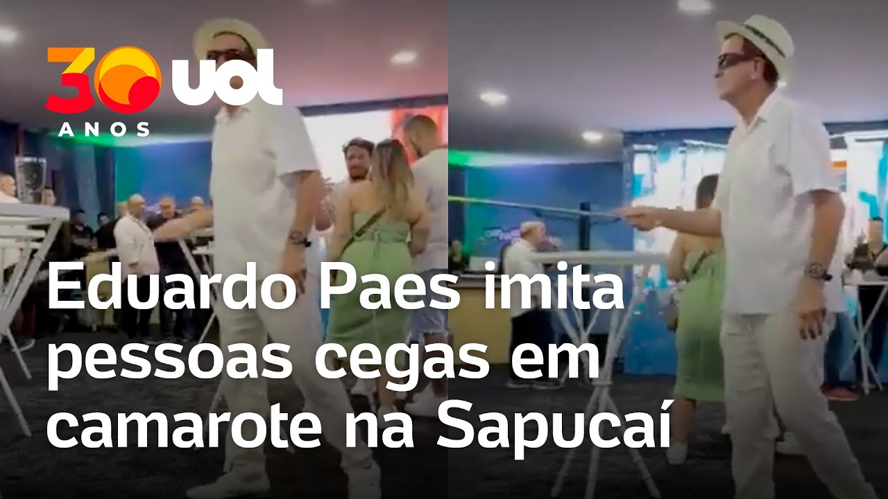 VídeosVeja Vídeo – Eduardo Paes imita pessoas com deficiência visual em camarote na Sapucaí; veja 19 de fevereiro de 2026038FacebookTwitterPinterestWhatsAppLinkedinTelegram O prefeito do Rio de Janeiro, Eduardo Paes (PSD), foi flagrado imitando pessoas com deficiência visual em camarote da Marquês de Sapucaí, no domingo, 15, durante o desfile de carnaval do Rio.Compartilhe isso: Clique para compartilhar no Facebook(abre em nova janela) Facebook Clique para compartilhar no X(abre em nova janela) 18+