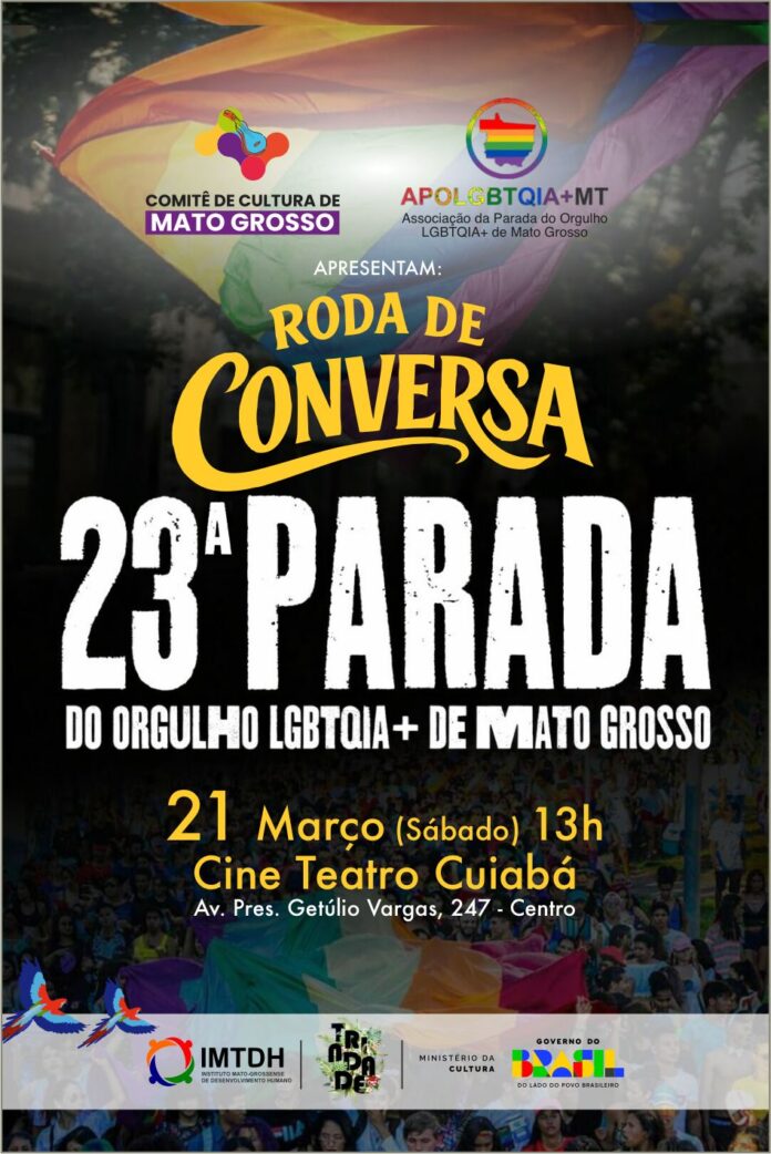 A programação tem início às 13h, com uma roda de conversa promovida pelo Comitê de Cultura de Mato Grosso, que propõe um espaço de escuta, troca de experiências e valorização das expressões culturais da comunidade LGBTQIA+ no estado, fortalecendo a participação social e o diálogo entre artistas, produtores e sociedade civil.